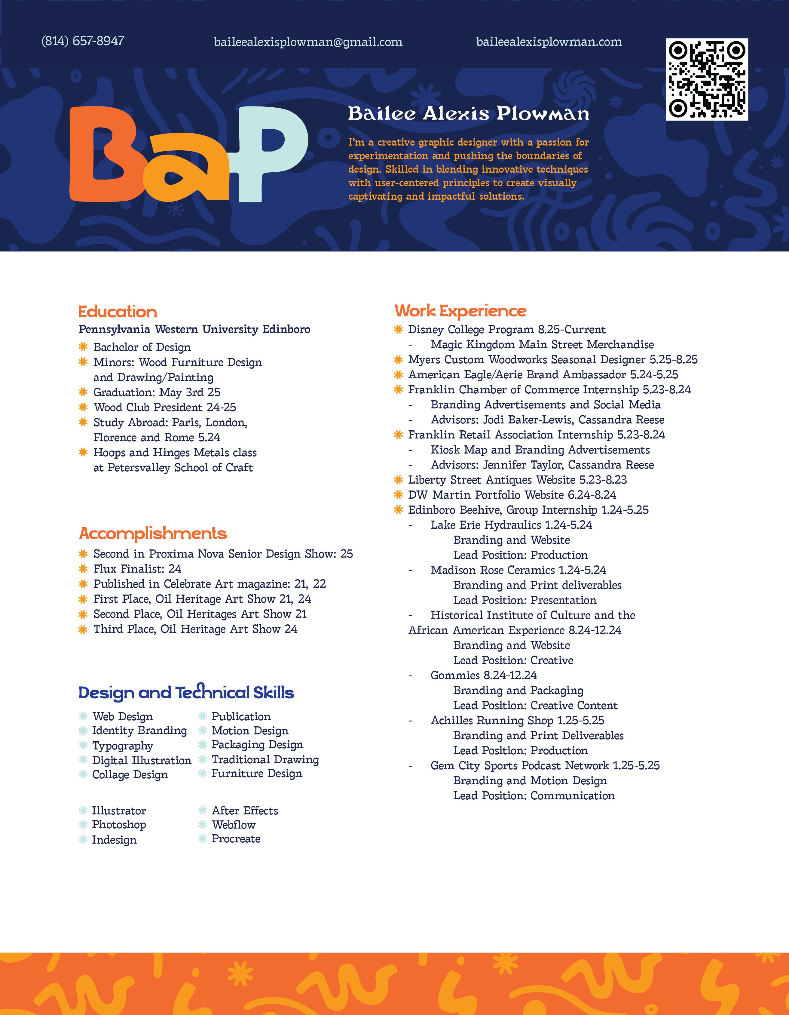 I’m a graphic designer obsessed with pushing design beyond the expected. I work across digital and traditional media, merging collage, mixed-media textures, and thoughtful typography to create work that feels alive. Web, branding, and print design are my home base, but my minors in Furniture Design and Drawing gave me a love for craft, form, and storytelling in every medium. No matter the project, I’m driven to make visuals that surprise, connect, and communicate with clarity and personality.